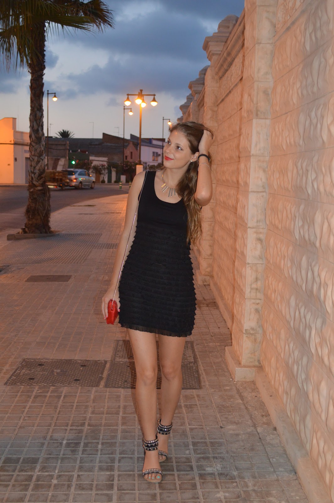 the outfit is perfect for the evening and the dinner. a little black dress always works and the red details are just perfect!